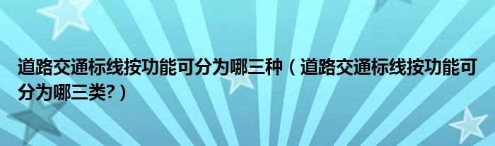 大家好,小美来为大家解答以上问题。道路交通标线按功能可分为哪三种,道路交通标线按功能可分为哪三类?很多人还不知道,现在让我们一起来看看吧!
