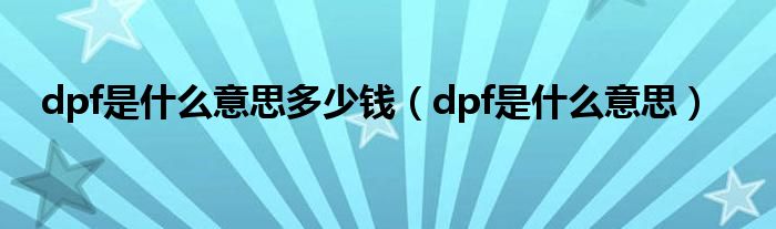 大家好,小美来为大家解答以上问题。dpf是什么意思多少钱,dpf是什么意思很多人还不知道,现在让我们一起来看看吧!