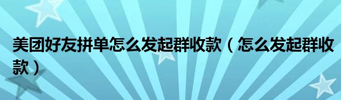 美团好友拼单怎么发起群收款(怎么发起群收款)