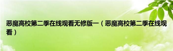 关于恶魔高校第二季在线观看无修版一,恶魔高校第二季在线观看这个很多人还不知道,今天菲菲来为大家解答以上的问题,现在让我们一起来看看吧!