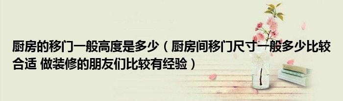 关于厨房的移门一般高度是多少,厨房间移门尺寸一般多少比较合适 做装修的朋友们比较有经验这个很多人还不知道,今天菲菲来为大家解答以上的问题,现在让我们一起来看看吧!