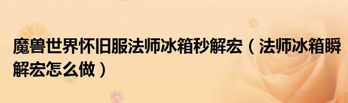 魔兽世界怀旧服法师冰箱秒解宏(法师冰箱瞬解宏怎么做)