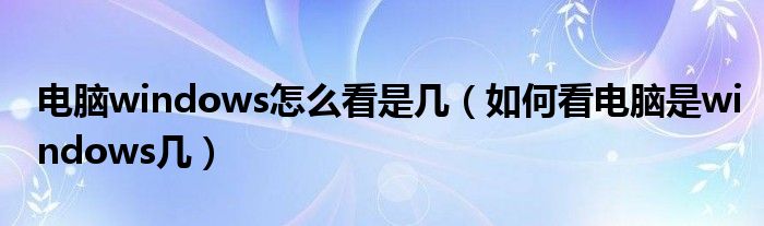 电脑windows怎么看是几(如何看电脑是windows几)