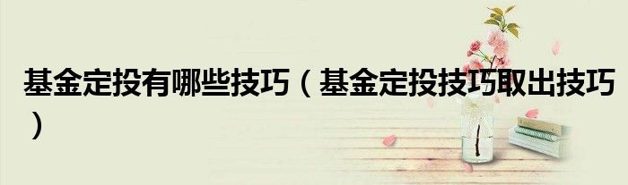 基金定投有哪些技巧(基金定投技巧取出技巧)