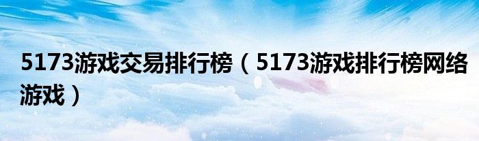 关于5173游戏交易排行榜,5173游戏排行榜网络游戏这个很多人还不知道,今天菲菲来为大家解答以上的问题,现在让我们一起来看看吧!