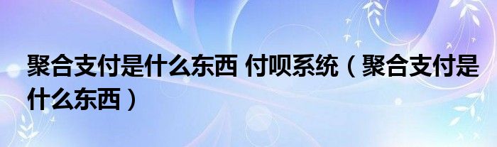 聚合支付是什么东西付呗系统(聚合支付是什么东西)