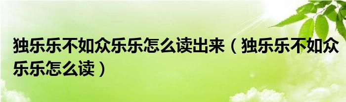 独乐乐不如众乐乐怎么读出来(独乐乐不如众乐乐怎么读)