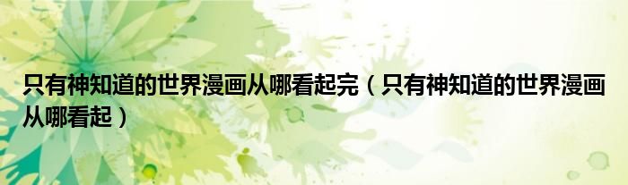 关于只有神知道的世界漫画从哪看起完,只有神知道的世界漫画从哪看起这个很多人还不知道,今天菲菲来为大家解答以上的问题,现在让我们一起来看看吧!
