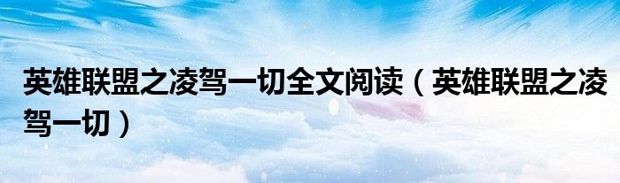 关于英雄联盟之凌驾一切全文阅读,英雄联盟之凌驾一切这个很多人还不知道,今天菲菲来为大家解答以上的问题,现在让我们一起来看看吧!