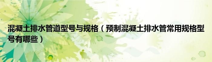 关于混凝土排水管道型号与规格,预制混凝土排水管常用规格型号有哪些这个很多人还不知道,今天菲菲来为大家解答以上的问题,现在让我们一起来看看吧!