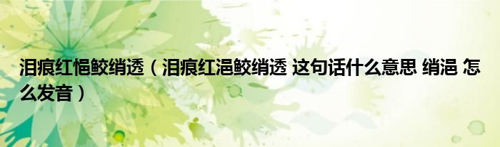 关于泪痕红悒鲛绡透,泪痕红浥鲛绡透 这句话什么意思 绡浥 怎么发音这个很多人还不知道,今天菲菲来为大家解答以上的问题,现在让我们一起来看看吧!