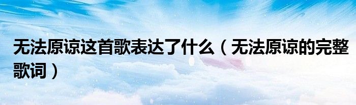 关于无法原谅这首歌表达了什么,无法原谅的完整歌词这个很多人还不知道,今天菲菲来为大家解答以上的问题,现在让我们一起来看看吧!