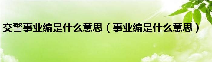 关于交警事业编是什么意思,事业编是什么意思这个很多人还不知道,今天菲菲来为大家解答以上的问题,现在让我们一起来看看吧!