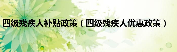 关于四级残疾人补贴政策,四级残疾人优惠政策这个很多人还不知道,今天菲菲来为大家解答以上的问题,现在让我们一起来看看吧!
