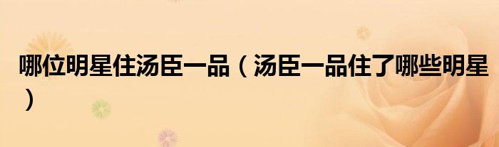 关于哪位明星住汤臣一品,汤臣一品住了哪些明星这个很多人还不知道,今天菲菲来为大家解答以上的问题,现在让我们一起来看看吧!