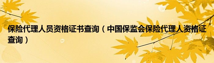 关于保险代理人员资格证书查询,中国保监会保险代理人资格证查询这个很多人还不知道,今天菲菲来为大家解答以上的问题,现在让我们一起来看看吧!