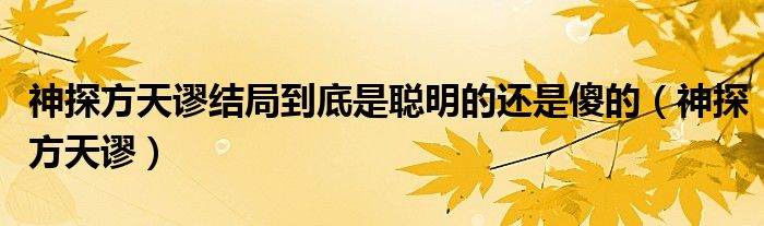 神探方天谬结局到底是聪明的还是傻的(神探方天谬)