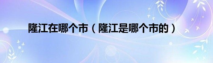 关于隆江在哪个市,隆江是哪个市的这个很多人还不知道,今天菲菲来为大家解答以上的问题,现在让我们一起来看看吧!