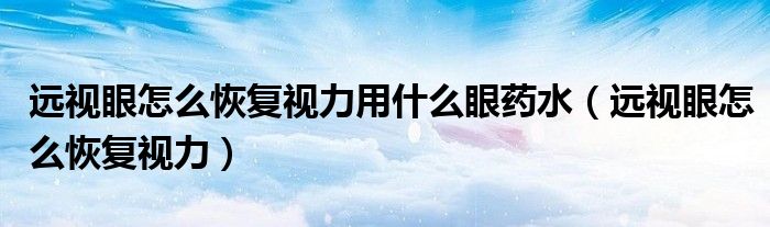 关于远视眼怎么恢复视力用什么眼药水,远视眼怎么恢复视力这个很多人还不知道,今天菲菲来为大家解答以上的问题,现在让我们一起来看看吧!