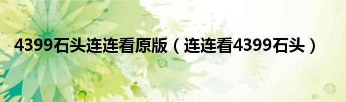 4399石头连连看原版(连连看4399石头)
