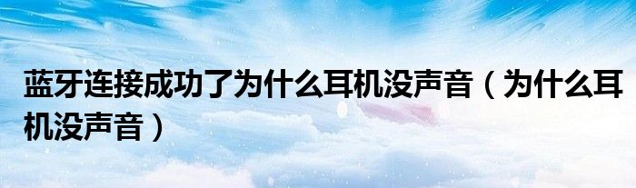 关于蓝牙连接成功了为什么耳机没声音,为什么耳机没声音这个很多人还不知道,今天菲菲来为大家解答以上的问题,现在让我们一起来看看吧!