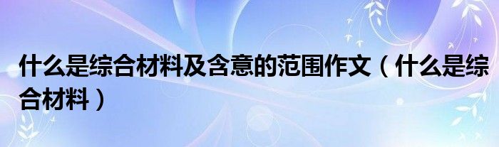 关于什么是综合材料及含意的范围作文,什么是综合材料这个很多人还不知道,今天菲菲来为大家解答以上的问题,现在让我们一起来看看吧!