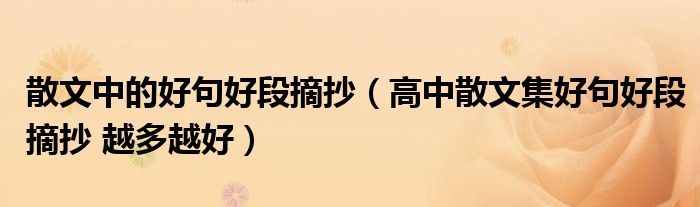关于散文中的好句好段摘抄,高中散文集好句好段摘抄 越多越好这个很多人还不知道,今天菲菲来为大家解答以上的问题,现在让我们一起来看看吧!