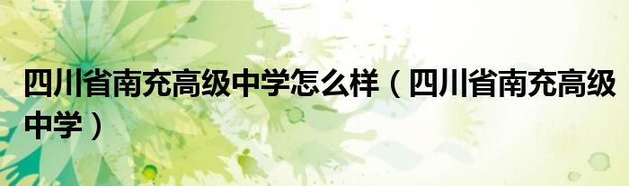 关于四川省南充高级中学怎么样,四川省南充高级中学这个很多人还不知道,今天菲菲来为大家解答以上的问题,现在让我们一起来看看吧!
