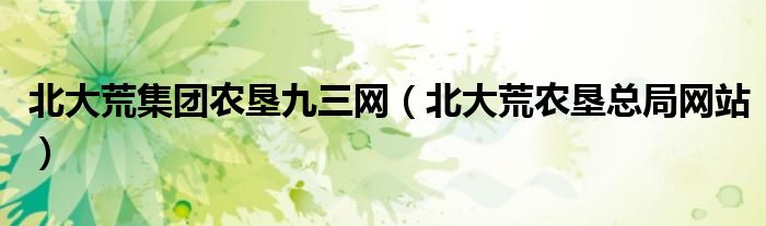 北大荒集团农垦九三网(北大荒农垦总局网站)