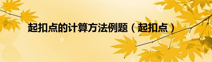 关于起扣点的计算方法例题,起扣点这个很多人还不知道,今天菲菲来为大家解答以上的问题,现在让我们一起来看看吧!