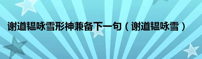 谢道韫咏雪形神兼备下一句(谢道韫咏雪)