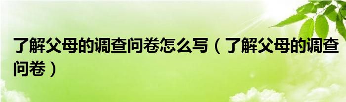 关于了解父母的调查问卷怎么写,了解父母的调查问卷这个很多人还不知道,今天菲菲来为大家解答以上的问题,现在让我们一起来看看吧!