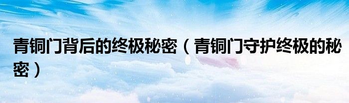 关于青铜门背后的终极秘密,青铜门守护终极的秘密这个很多人还不知道,今天菲菲来为大家解答以上的问题,现在让我们一起来看看吧!