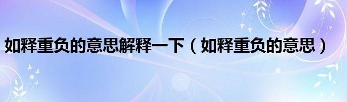 关于如释重负的意思解释一下,如释重负的意思这个很多人还不知道,今天菲菲来为大家解答以上的问题,现在让我们一起来看看吧!