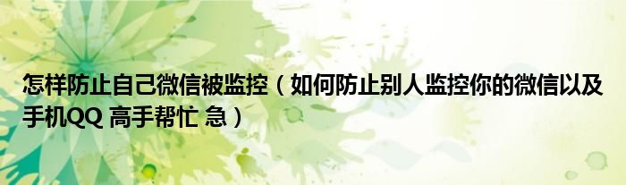 关于怎样防止自己微信被监控,如何防止别人监控你的微信以及手机QQ 高手帮忙 急这个很多人还不知道,今天菲菲来为大家解答以上的问题,现在让我们一起来看看吧!