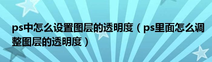 关于ps中怎么设置图层的透明度,ps里面怎么调整图层的透明度这个很多人还不知道,今天菲菲来为大家解答以上的问题,现在让我们一起来看看吧!