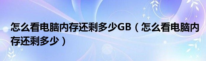 怎么看电脑内存还剩多少GB(怎么看电脑内存还剩多少)