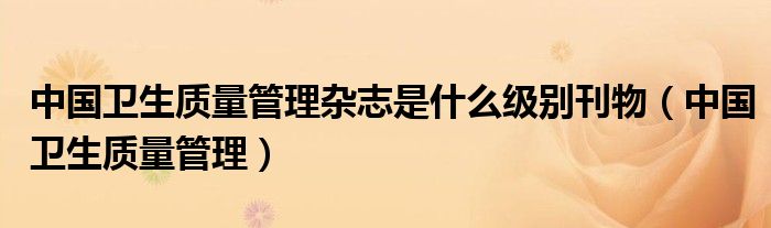 中国卫生质量管理杂志是什么级别刊物(中国卫生质量管理)