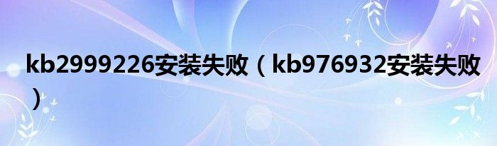 关于kb2999226安装失败,kb976932安装失败这个很多人还不知道,今天菲菲来为大家解答以上的问题,现在让我们一起来看看吧!