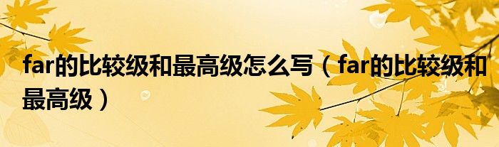 关于far的比较级和最高级怎么写,far的比较级和最高级这个很多人还不知道,今天菲菲来为大家解答以上的问题,现在让我们一起来看看吧!