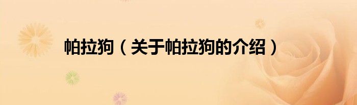 帕拉狗(关于帕拉狗的介绍)
