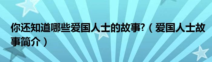 关于你还知道哪些爱国人士的故事?,爱国人士故事简介这个很多人还不知道,今天菲菲来为大家解答以上的问题,现在让我们一起来看看吧!