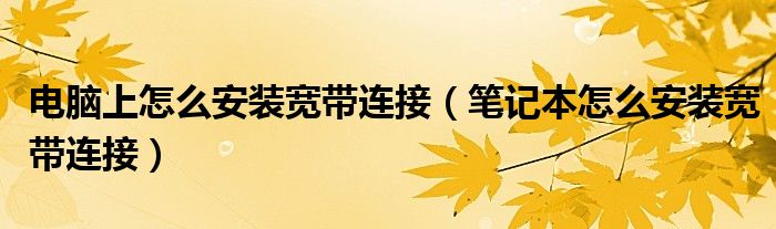 电脑上怎么安装宽带连接(笔记本怎么安装宽带连接)
