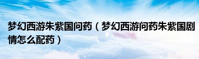 梦幻西游朱紫国问药(梦幻西游问药朱紫国剧情怎么配药)