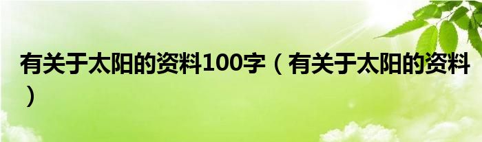 关于有关于太阳的资料100字,有关于太阳的资料这个很多人还不知道,今天菲菲来为大家解答以上的问题,现在让我们一起来看看吧!