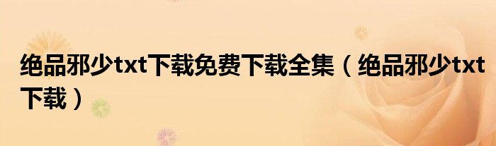 绝品邪少txt下载免费下载全集(绝品邪少txt下载)