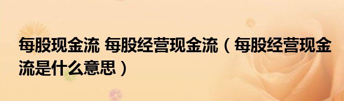 关于每股现金流 每股经营现金流,每股经营现金流是什么意思这个很多人还不知道,今天菲菲来为大家解答以上的问题,现在让我们一起来看看吧!