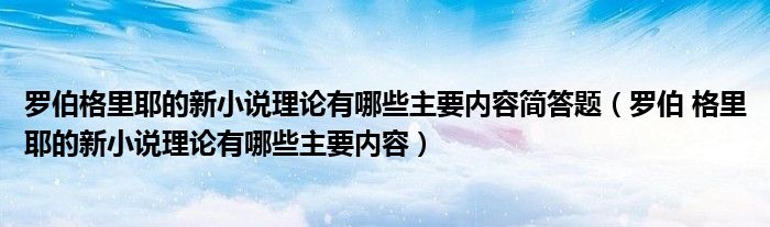 关于罗伯格里耶的新小说理论有哪些主要内容简答题,罗伯 格里耶的新小说理论有哪些主要内容这个很多人还不知道,今天菲菲来为大家解答以上的问题,现在让我们一起来看看吧!