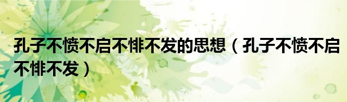 关于孔子不愤不启不悱不发的思想,孔子不愤不启不悱不发这个很多人还不知道,今天菲菲来为大家解答以上的问题,现在让我们一起来看看吧!