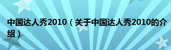 中国达人秀2010(关于中国达人秀2010的介绍)